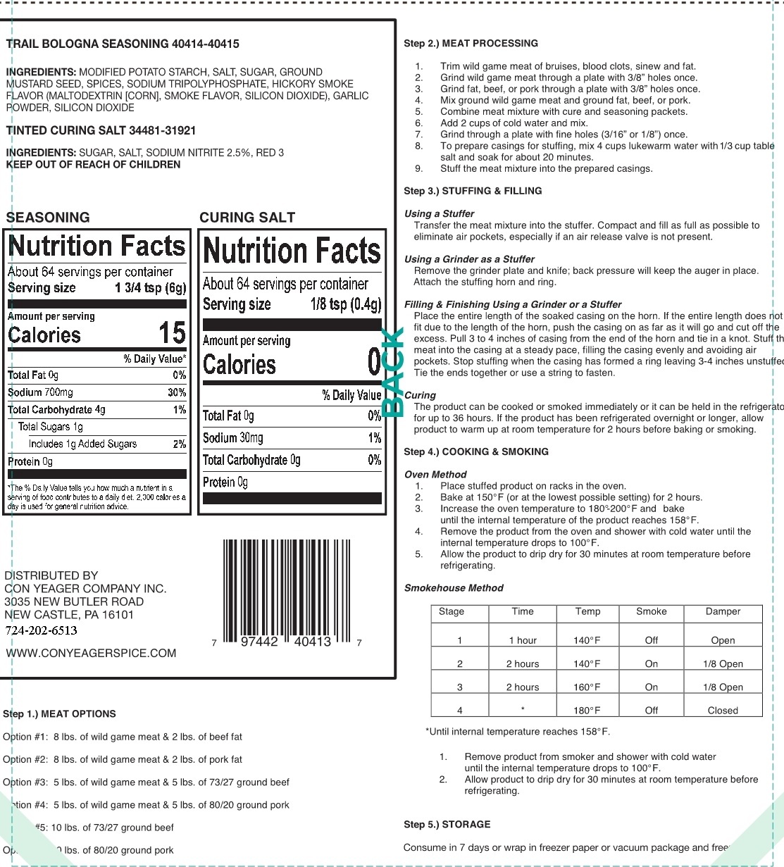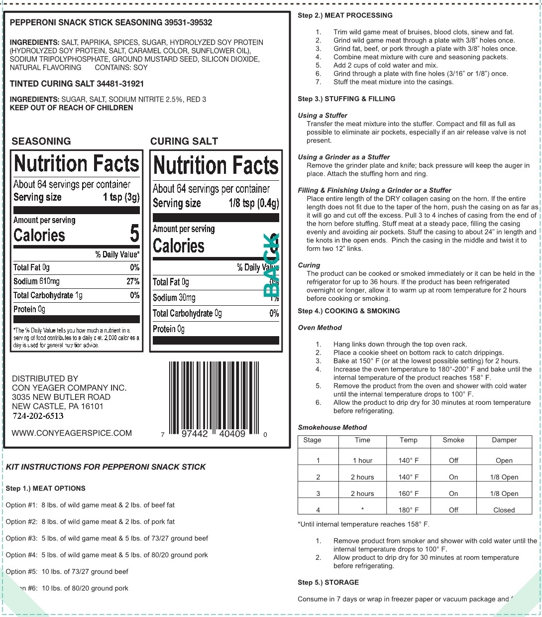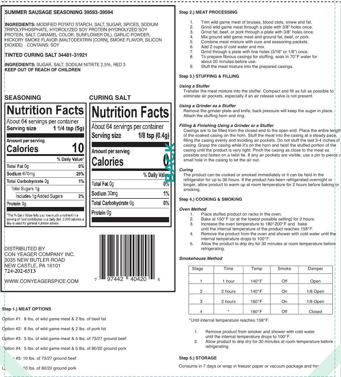 - Summer Sausage Seasoning Kit Directions (Item # 40420)