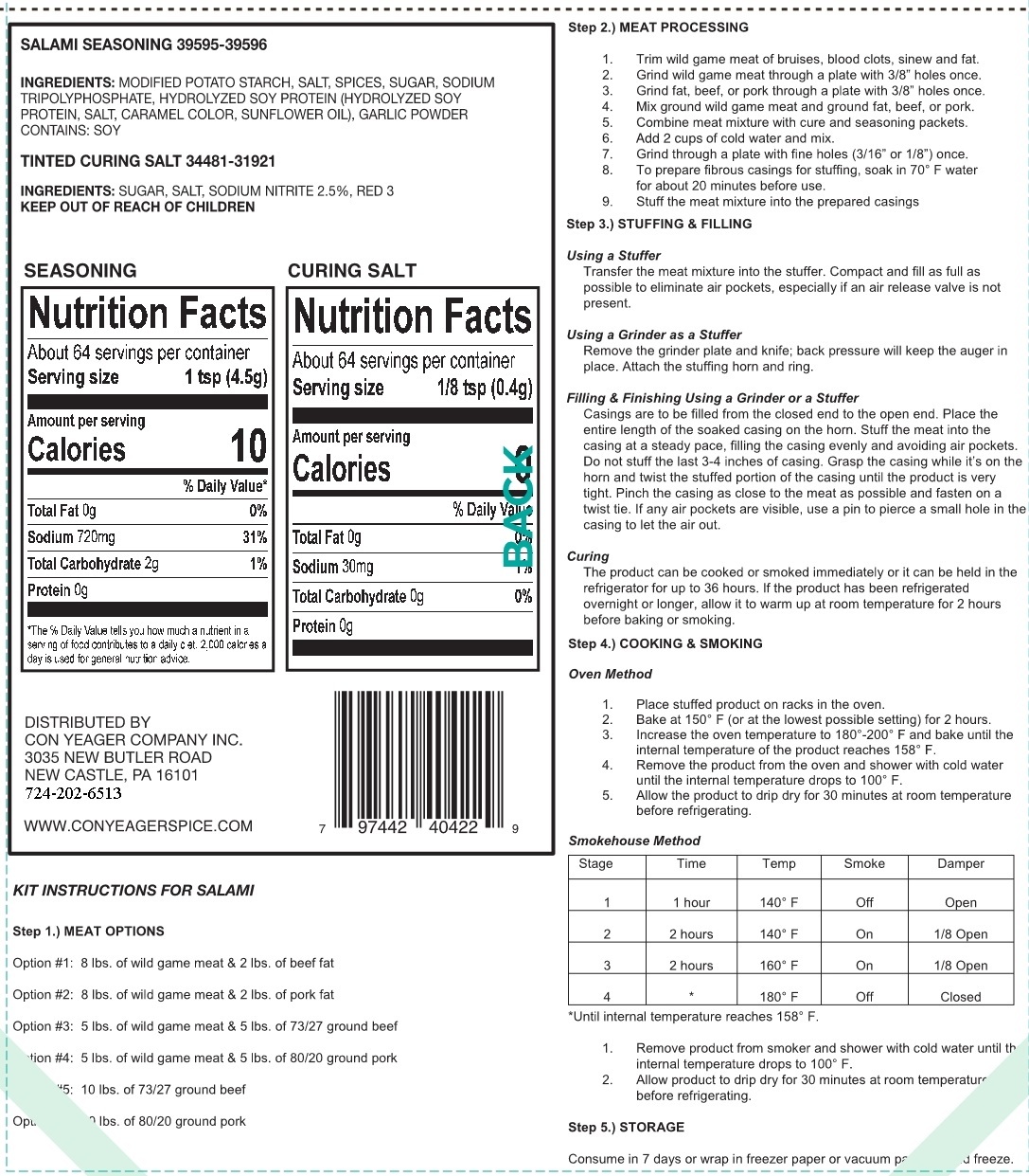 - Salami Seasoning Kit Directions (Item # 40422)